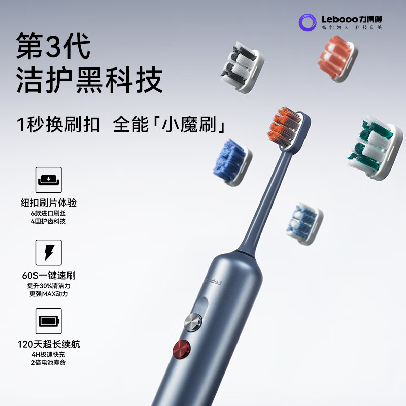 力博得(Lebooo)电动牙刷充电式全自动智能震动牙刷 成人情侣款 新年礼物情人节礼物送男友/女友 大洁力 星辉紫价格:199.00元!