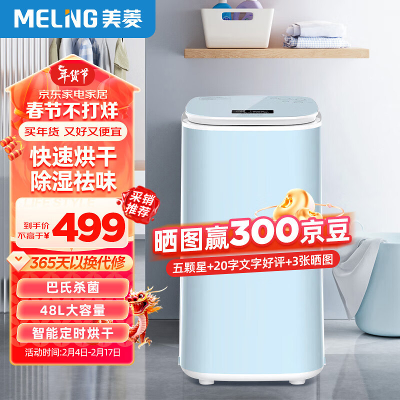 美菱(MeiLing)干衣机烘干机 家用消毒高温杀菌烘衣机 宝宝婴儿衣物轻音速干风干机 浅蓝色MD-601价格:499.00元!