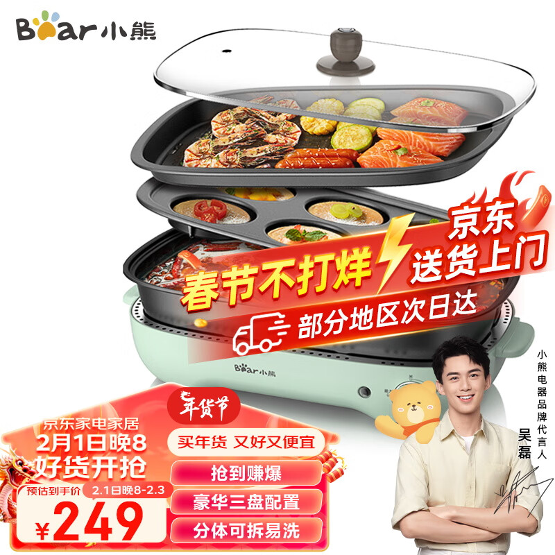 小熊(Bear)多功能锅 多用途锅 料理锅 烤肉锅 火锅专用锅家用电热火锅煎烤涮一体电烤炉网红款 DHG-C40D5 4L价格:279.00元!