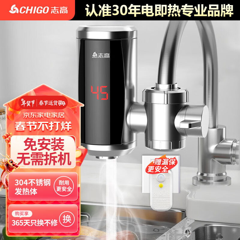 志高(CHIGO)电热水龙头 速热加热电热水器 即热式水龙头电热水器 不锈钢 水龙头接驳式 免安装ZG-WMA33价格:129.00元!