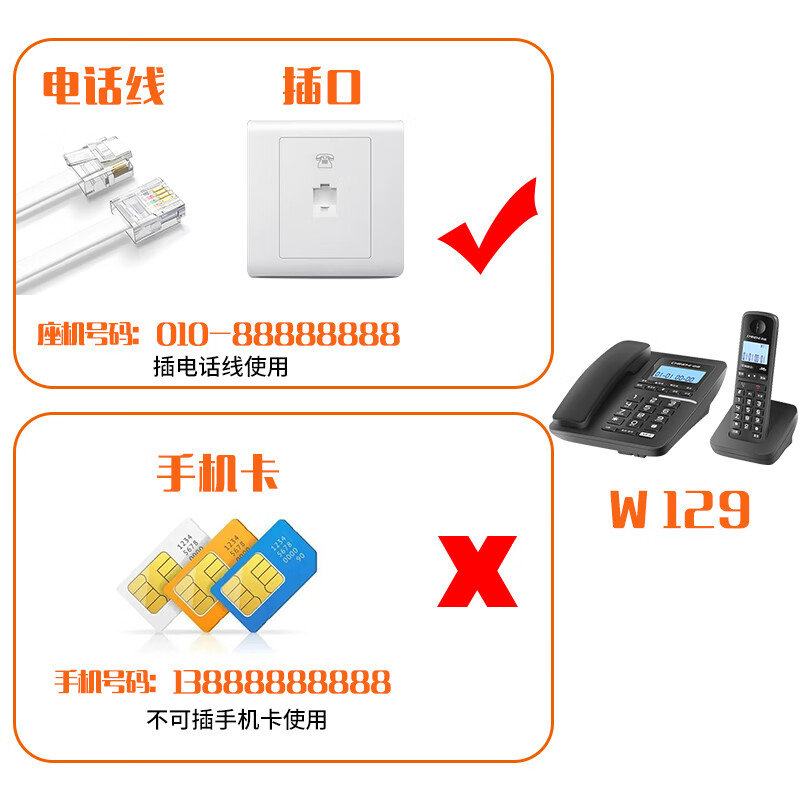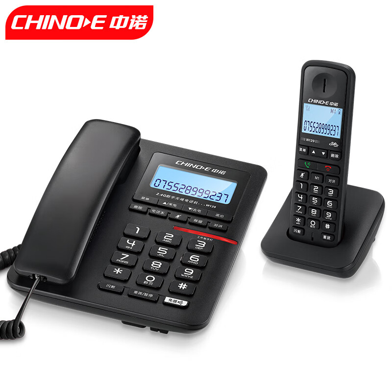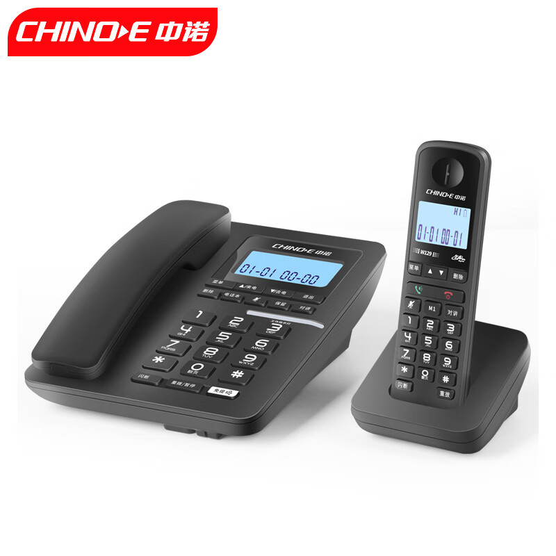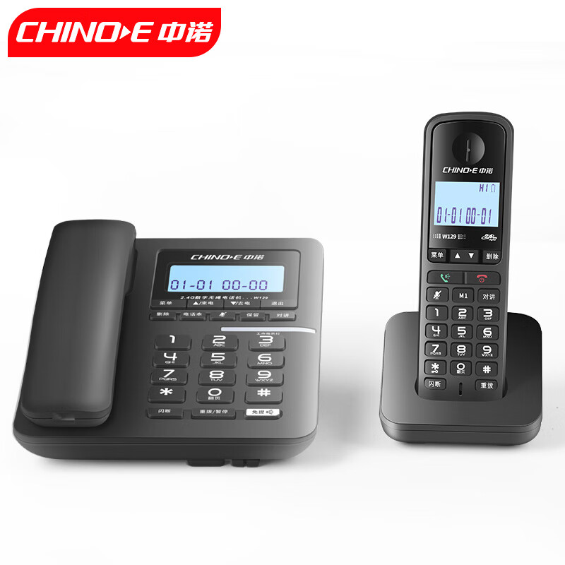 中诺数字无绳电话机无线座机子母机一拖一套装内线通话固定电话坐式固话字母机家用用办公老人W129黑价格:209.00元!
