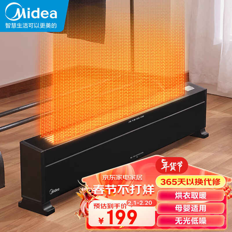 美的(Midea)“黑骑士”取暖器 电暖器 电暖气片家用 移动地暖 节能轻音 浴室取暖 电热踢脚线取暖器HDX22K价格:276.00元!
