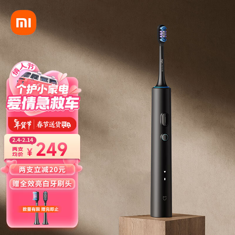 米家小米电动牙刷T501成人/学生 米家APP 30种定制方案 炫彩灯光 深灰色 情人节礼物推荐价格:259.00元!