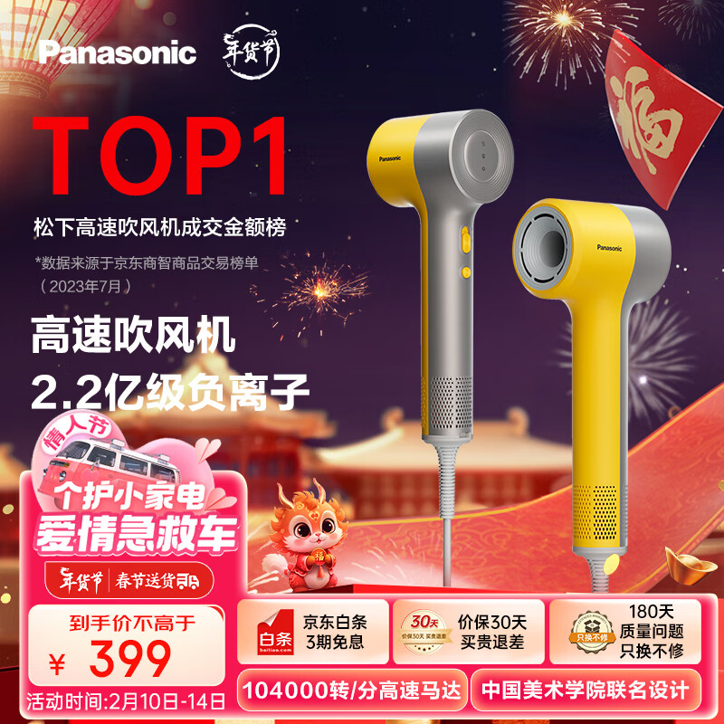 松下(Panasonic)缤纷筒高速吹风机负离子低噪音大风力家用新年礼物电吹风速干护发家用大功率吹风筒NE7毕加索黄价格:459.00元!