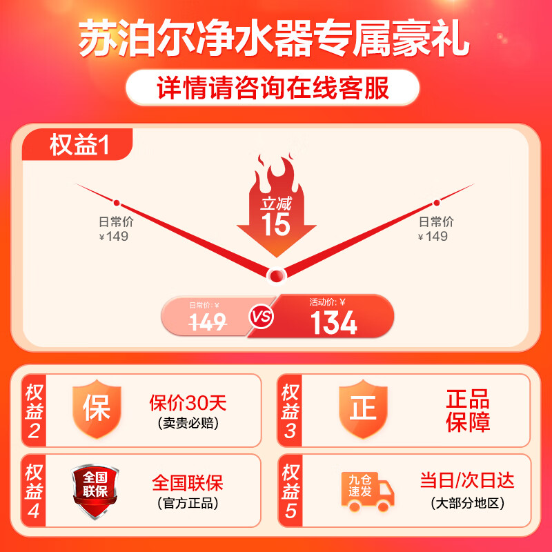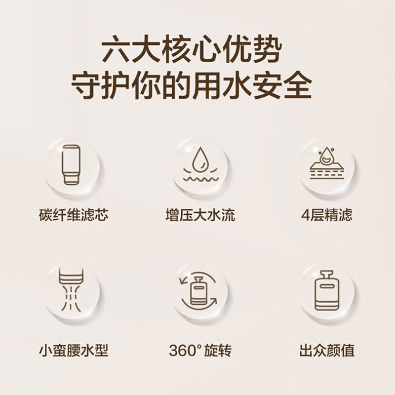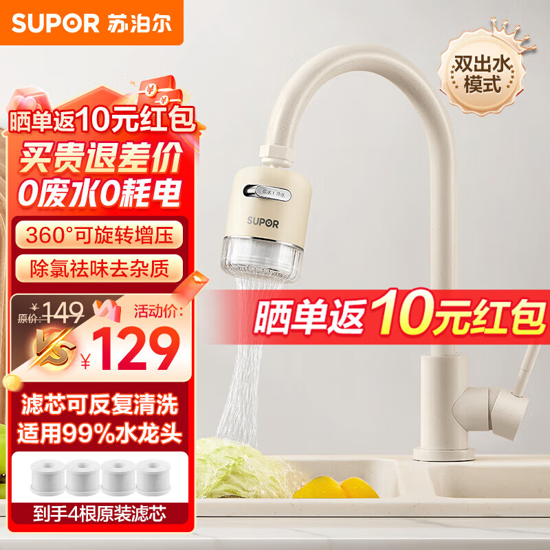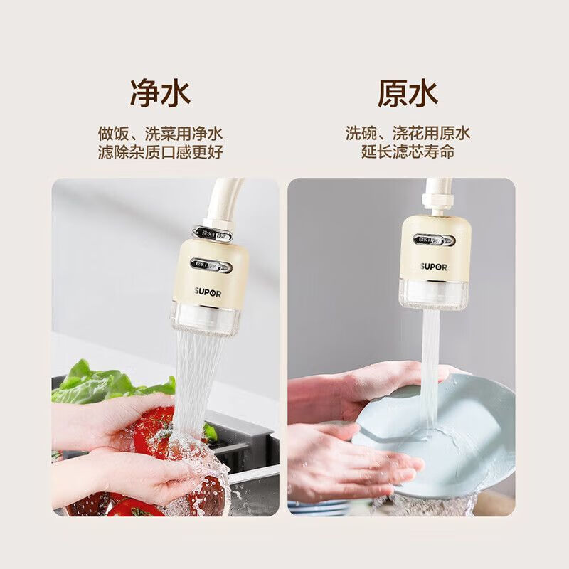 苏泊尔水龙头净水器A6家用厨房自来水龙头过滤器净水机净化器【一机四芯】价格:129.00元!