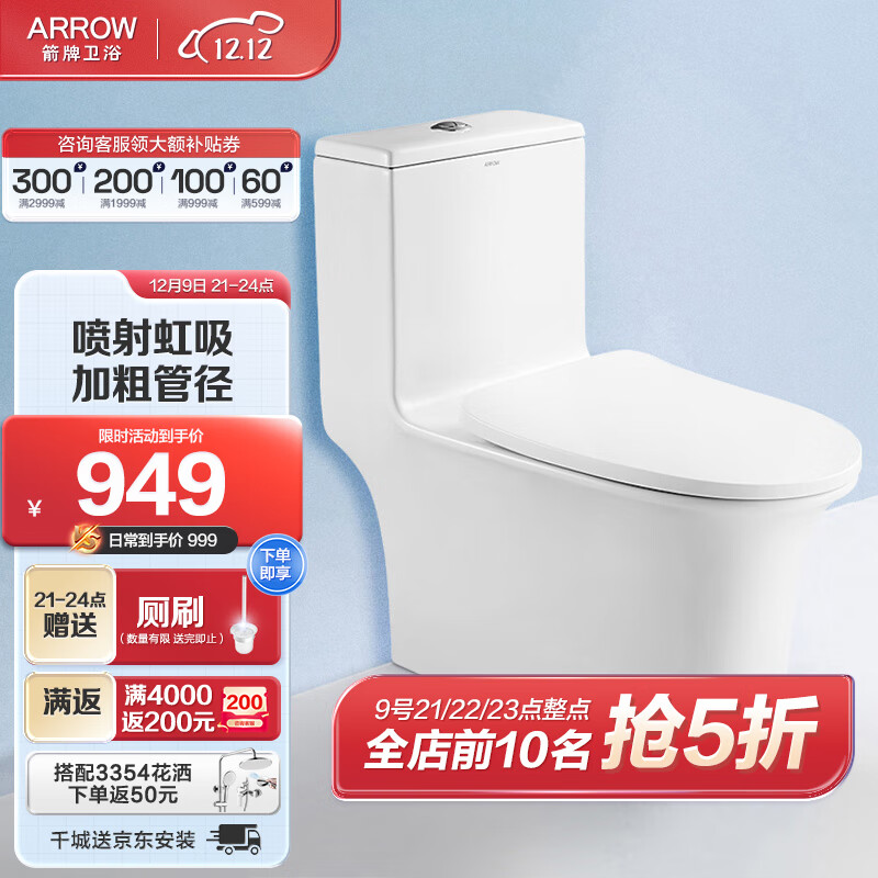 箭牌(ARROW)抽水马桶家用卫浴虹吸坐便器普通座便节水坐厕 1级水效AEB12617L价格:1289.00元!