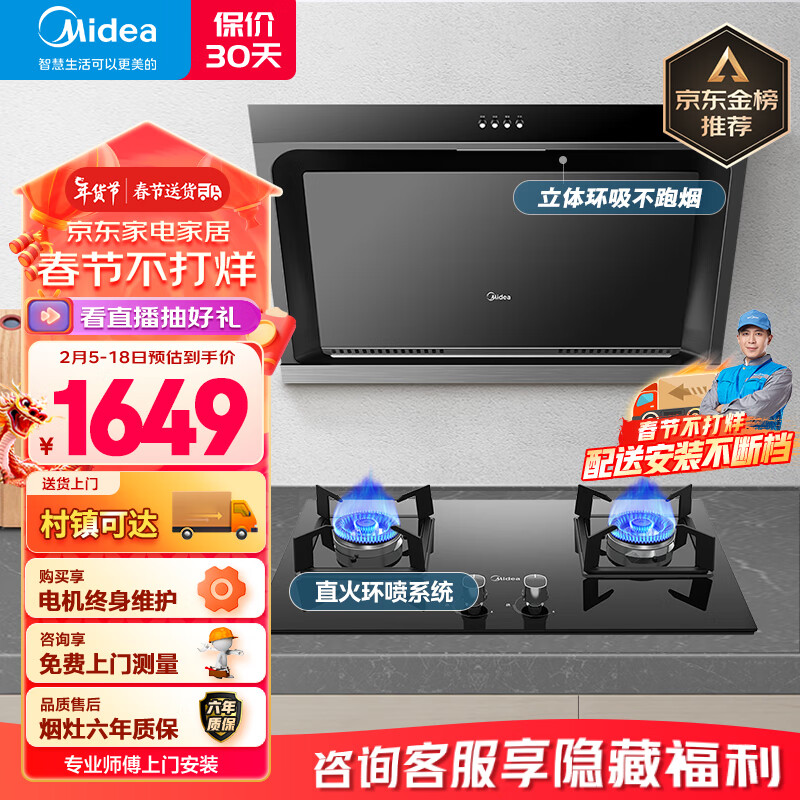 美的(Midea) 侧吸式家用抽油烟机 燃气灶具烟灶套装 多重油烟分离技术 立体环吸 J30+Q330(液化气)价格:1649.00元!