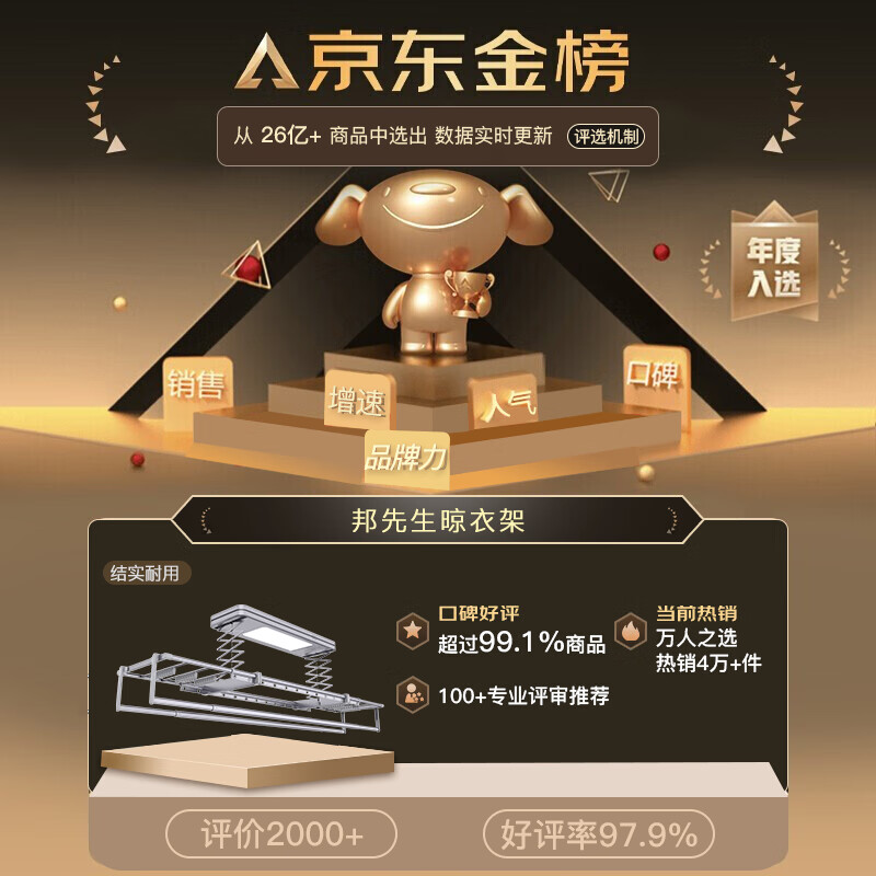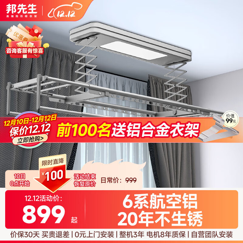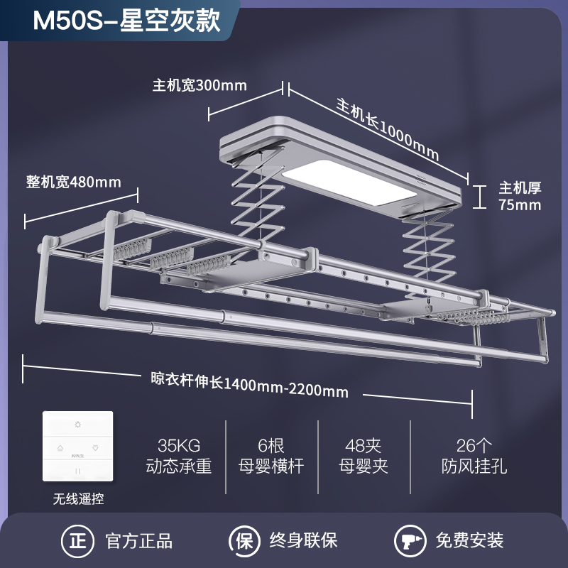 邦先生电动晾衣架智能小阳台全自动升降伸缩遥控米家用凉晒衣杆机M50S灰价格:1199.00元!
