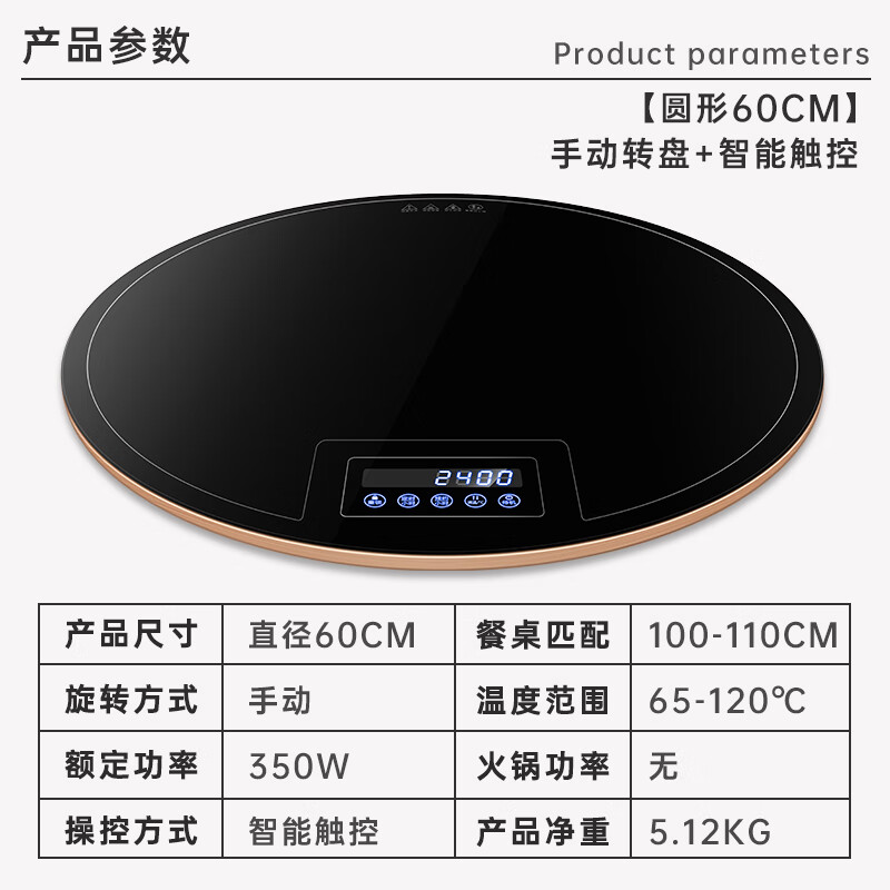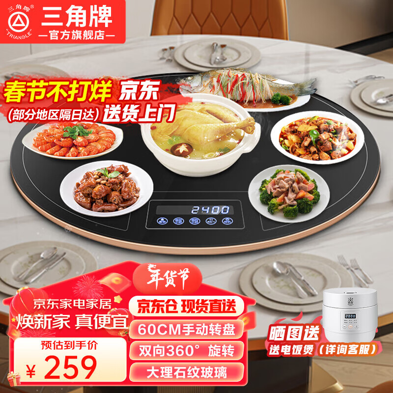 三角牌(Triangle) 暖菜板热菜板加热板饭菜保温板电磁炉多功能带火锅暖菜转盘自动旋转饭菜餐桌 手动转盘丨不带火锅加热 【60CM】价格:289.00元!
