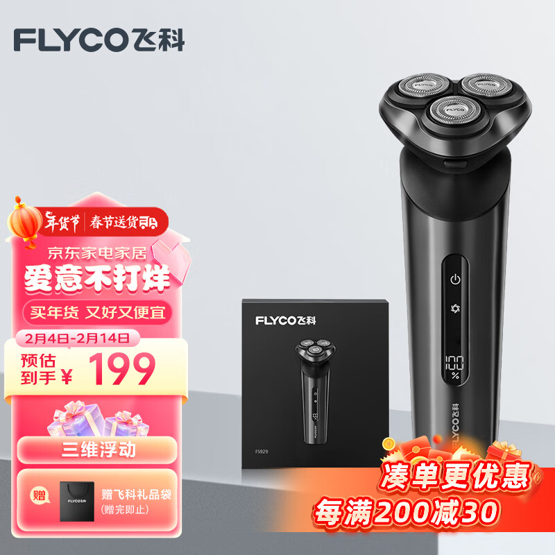 飞科(FLYCO)电动剃须刀男士刮胡须刀须刨FS929 生日新年情人节日礼物送男友送老公送爸爸价格:249.00元!