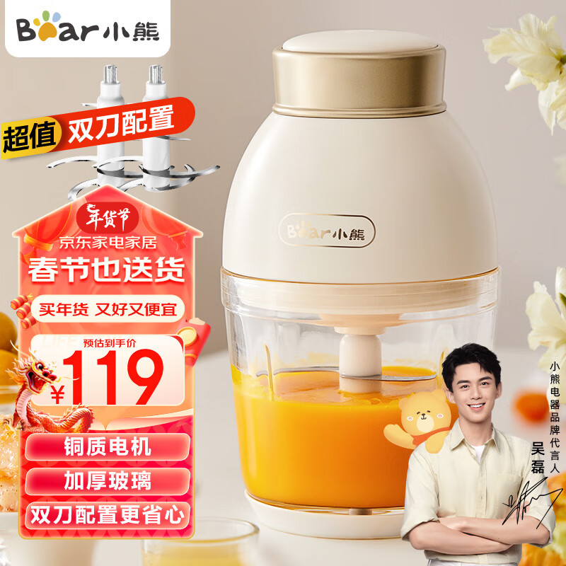 小熊(Bear)婴儿辅食机 小型多功能打泥搅拌机宝宝料理机 蒜蓉机 家用迷你绞馅碎肉机 QSJ-D02Q1 0.6L价格:119.00元!