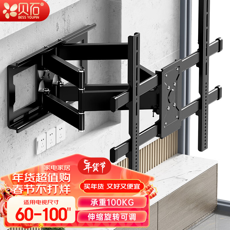 贝石 电视机挂架 电视支架伸缩旋转壁挂架通用小米创维海信TCL康佳华为智慧屏等电视架 60-100英寸丨重载健将丨加倍承重价格:429.00元!