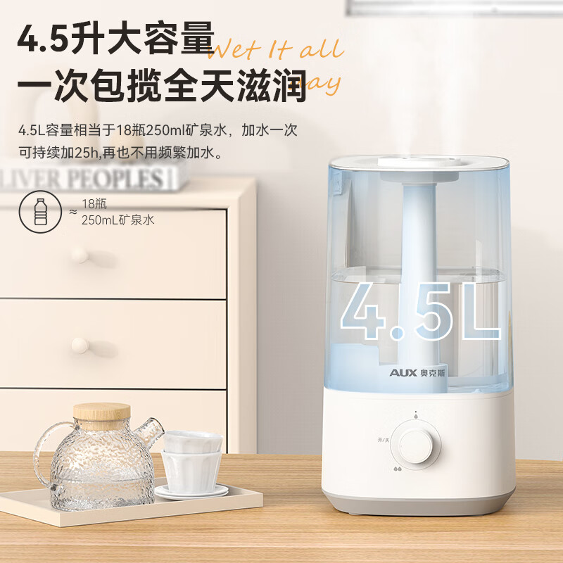 奥克斯(AUX)加湿器大容量上加水家用办公室卧室母婴空气净化加湿价格:89.00元!