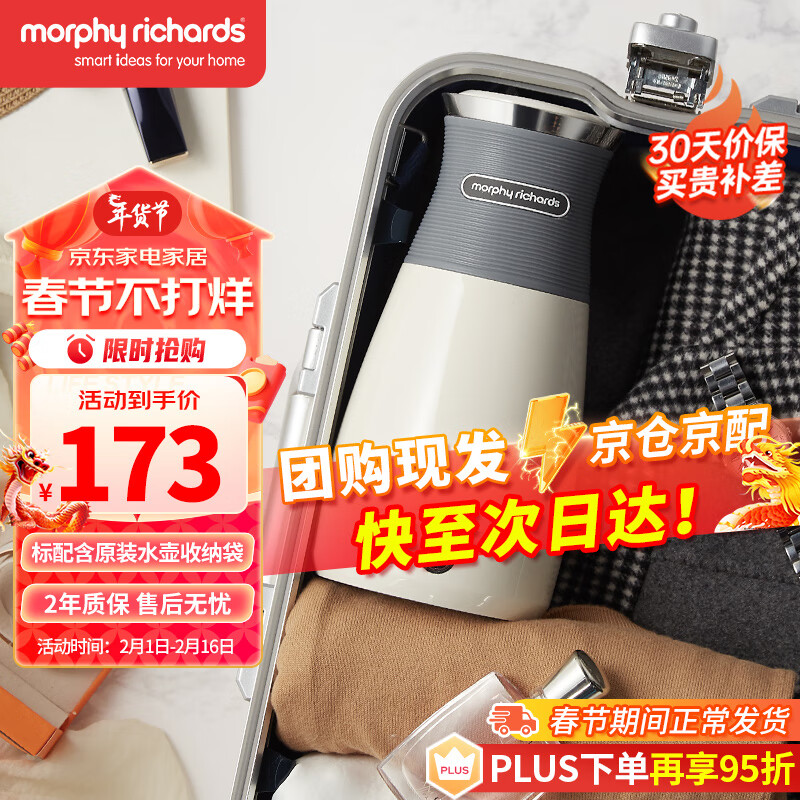摩飞电器(Morphyrichards)电水壶小型便携式烧水壶旅行电热水壶不锈钢双层防烫MR6090 灰色价格:166.00元!