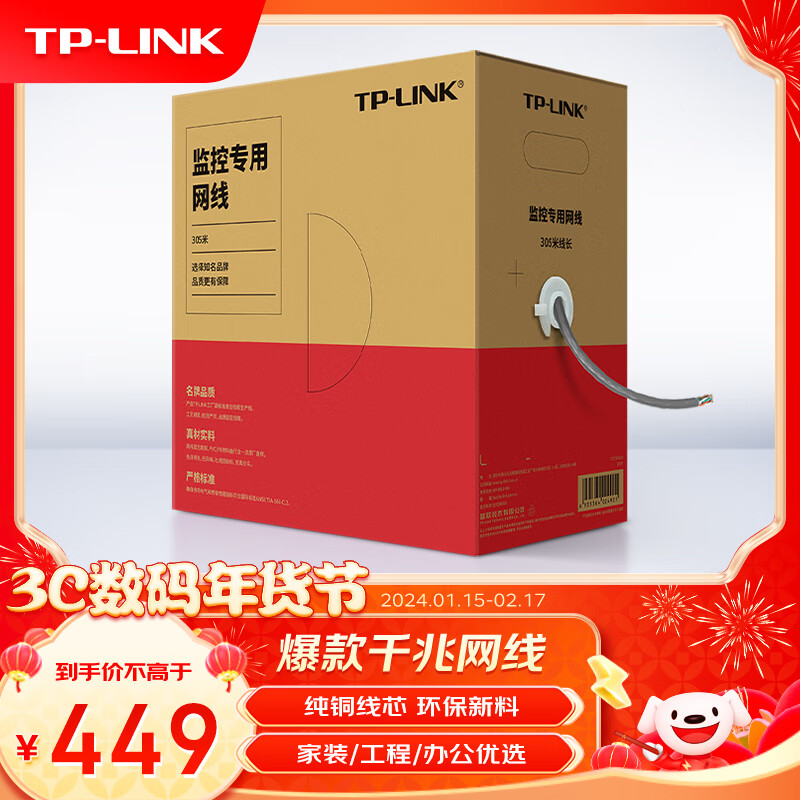 TP-link 超五类性能千兆网线 原装非屏蔽高速工程网线 纯铜双绞线 家装网络监控布线305米箱线EC5e-305B价格:449.00元!