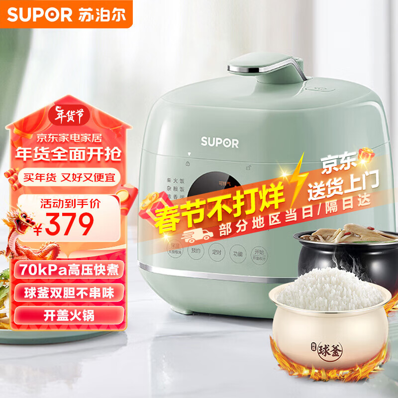 苏泊尔(SUPOR)一人食迷你电锅2.3L 家用智能触控面板白陶晶内胆宝宝粥23FC8027Q双胆高压锅1-3人价格:429.00元!