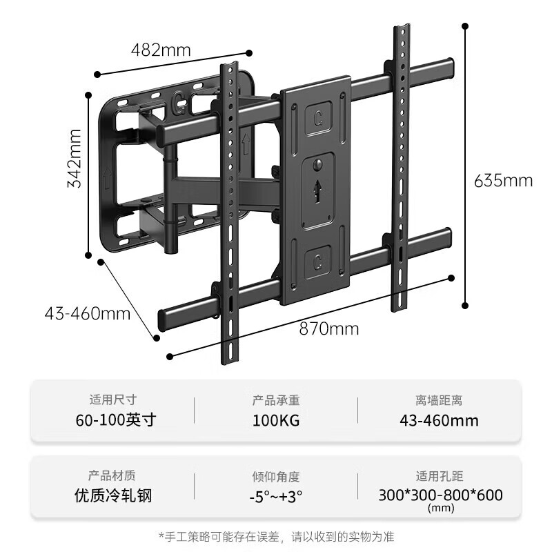 幕后英雄 电视挂架(60-100英寸)大屏电视支架壁挂通用伸缩旋转电视架小米海信ViddaTCL康佳索尼电视机支架价格:469.00元!
