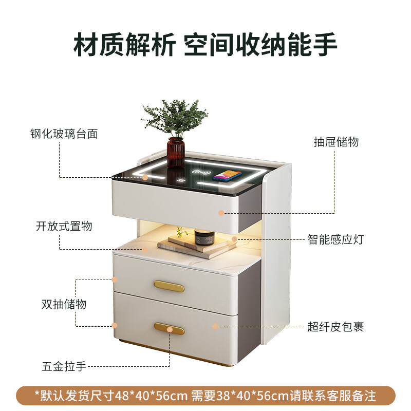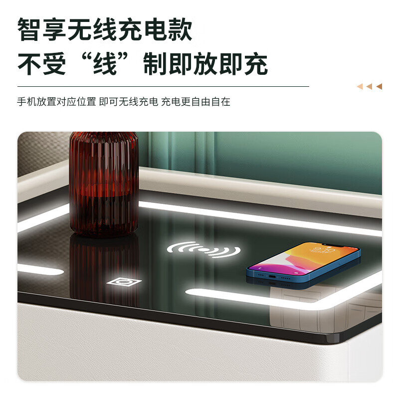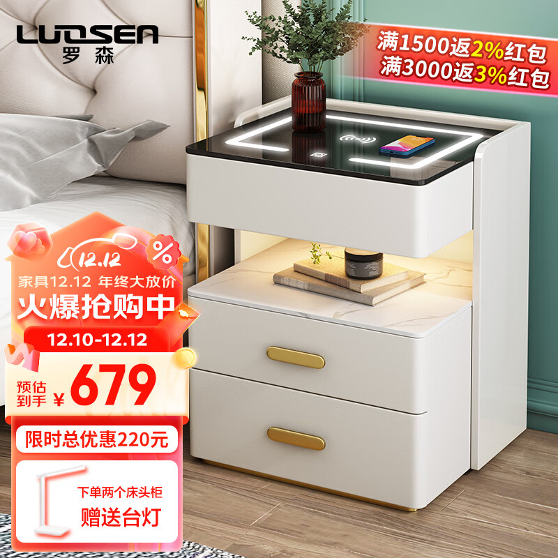 罗森(LUOSEN)智能床头柜简约现代小型卧室超窄岩板床头柜多功能无线充电 米白价格:899.00元!