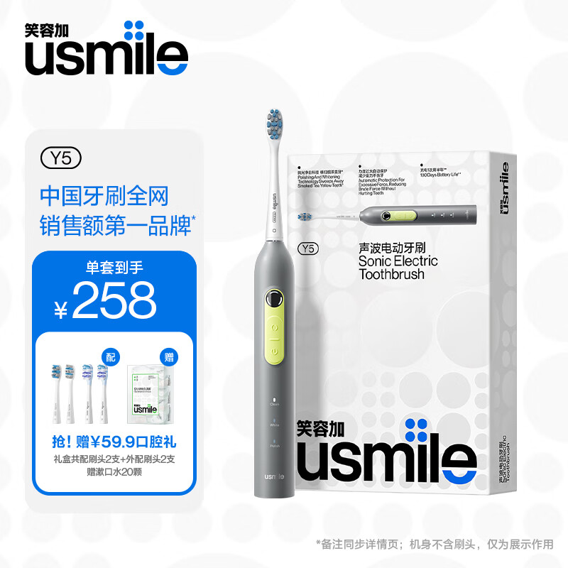 usmile 笑容加电动牙刷 Y5越野灰+缓震亮白刷头2支装价格:258.00元!
