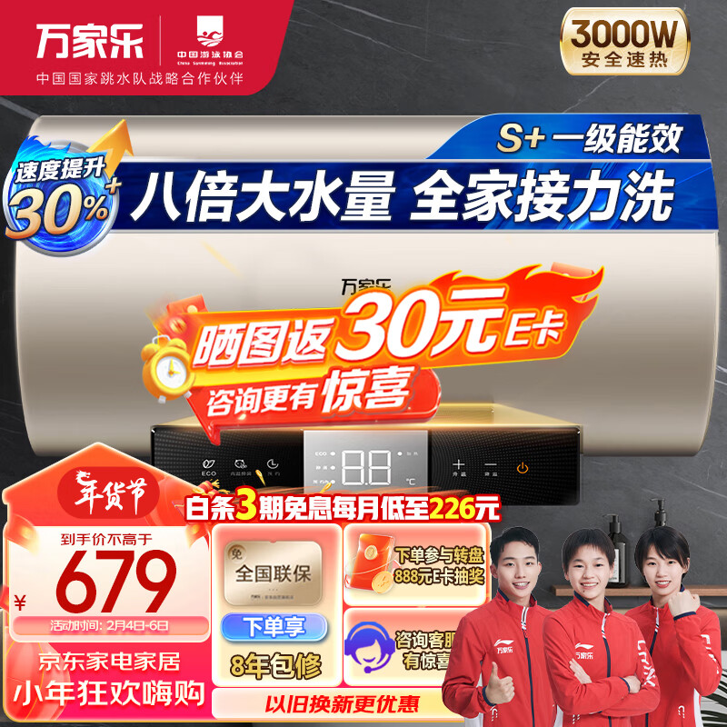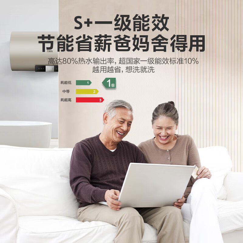 万家乐60升电热水器3000W速热大水量 一级能效 双重防电 高温杀菌 搪瓷内胆 香槟金D60-FY2价格:672.00元!