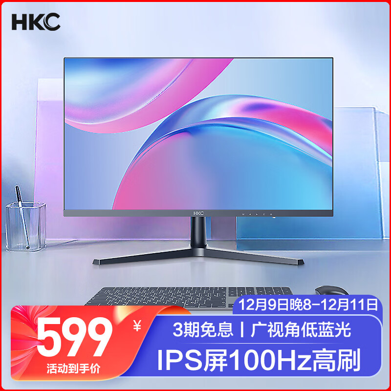 HKC 27英寸 IPS屏 三面微边 广视角 100Hz刷新率 低蓝光不闪屏 商务办公设计 液晶台式电脑屏幕 显示器 V2717价格:799.00元!