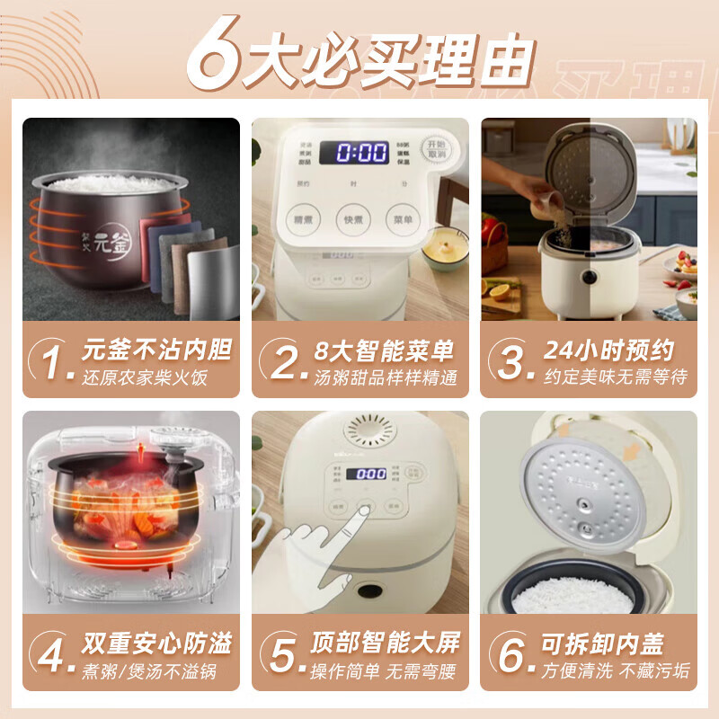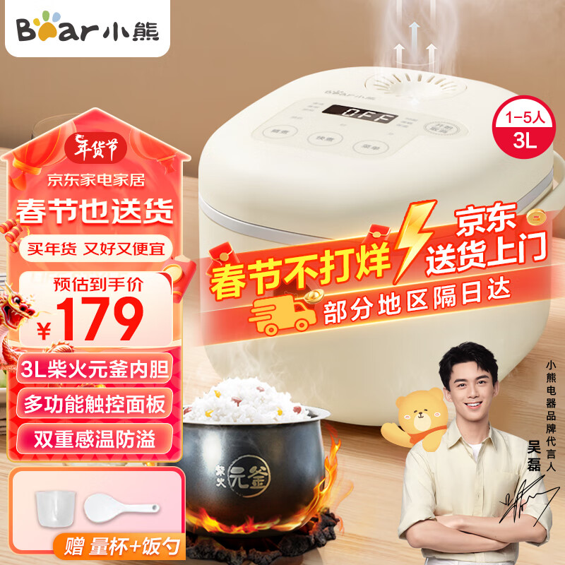 小熊(Bear)电饭煲 电饭锅 家用3-4个人多功能饭煲智能防溢预约柴火饭迷你米饭锅可煮饭汤粥蛋糕甜品 3L电饭煲 3L价格:189.00元!