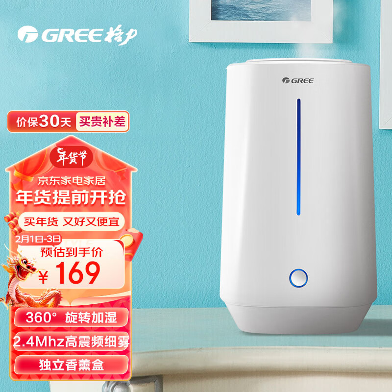 格力(GREE)加湿器 4L大容量 低噪大雾加湿 上加水 办公室家用卧室带香薰盒 360°旋转出雾(SC-40x66)价格:159.00元!