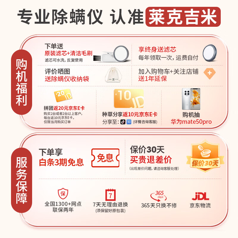 莱克吉米除螨吸尘神器B6PRO婴护家用床上小型手持超声波紫外线杀菌去螨虫大吸力除螨仪一体机【甄净】价格:949.00元!