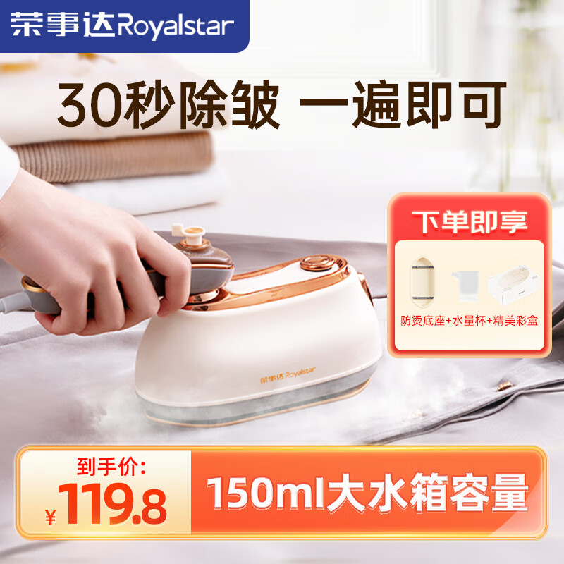 荣事达(Royalstar)挂烫机手持电熨斗烫挂烫机蒸汽熨斗衣服迷你小型便携家用烫衣机 陶瓷面板价格:139.80元!