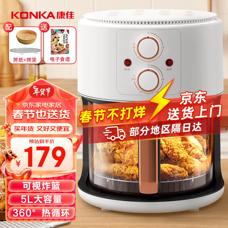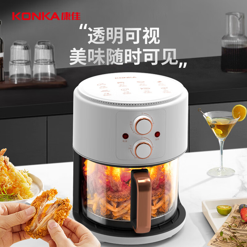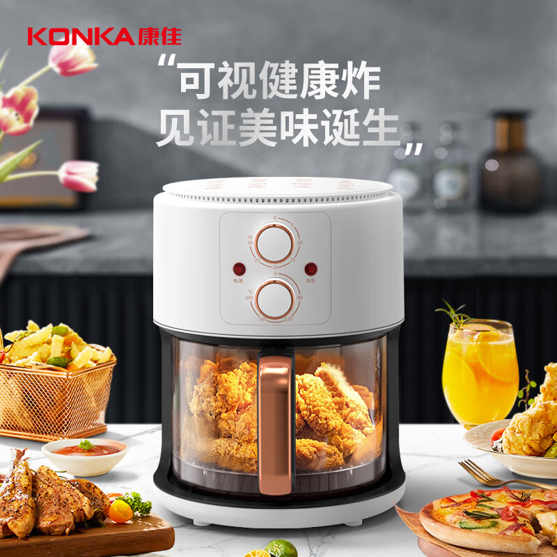 康佳(KONKA)空气炸锅 烤肉锅 家用多功能 智能玻璃内胆可视 低脂 无油煎炸空烤5L大容量 KKZG-5006-W价格:179.00元!