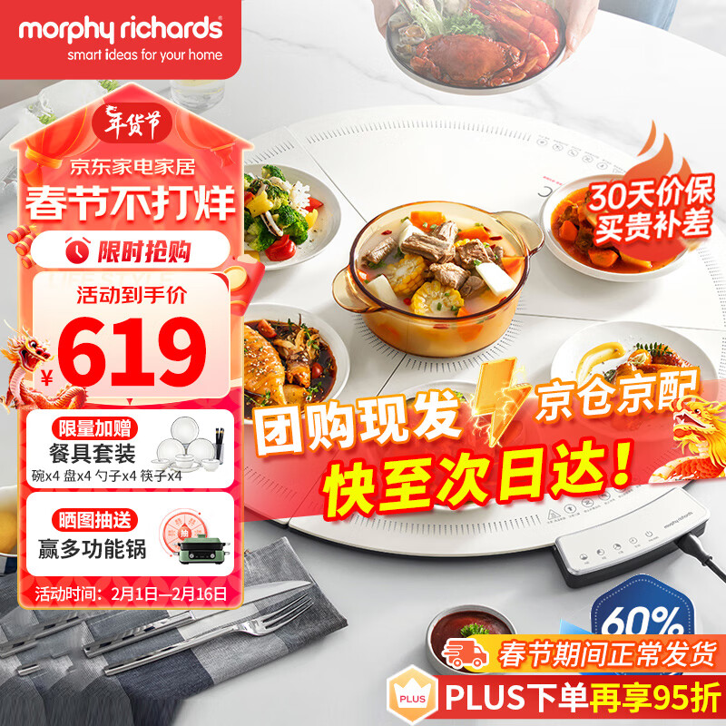 摩飞电器(Morphyrichards)折叠暖菜板 饭菜保温板热菜板加热桌垫 年货送礼赠老人送长辈 圆形饭菜保温板带解冻温奶MR8306价格:619.00元!