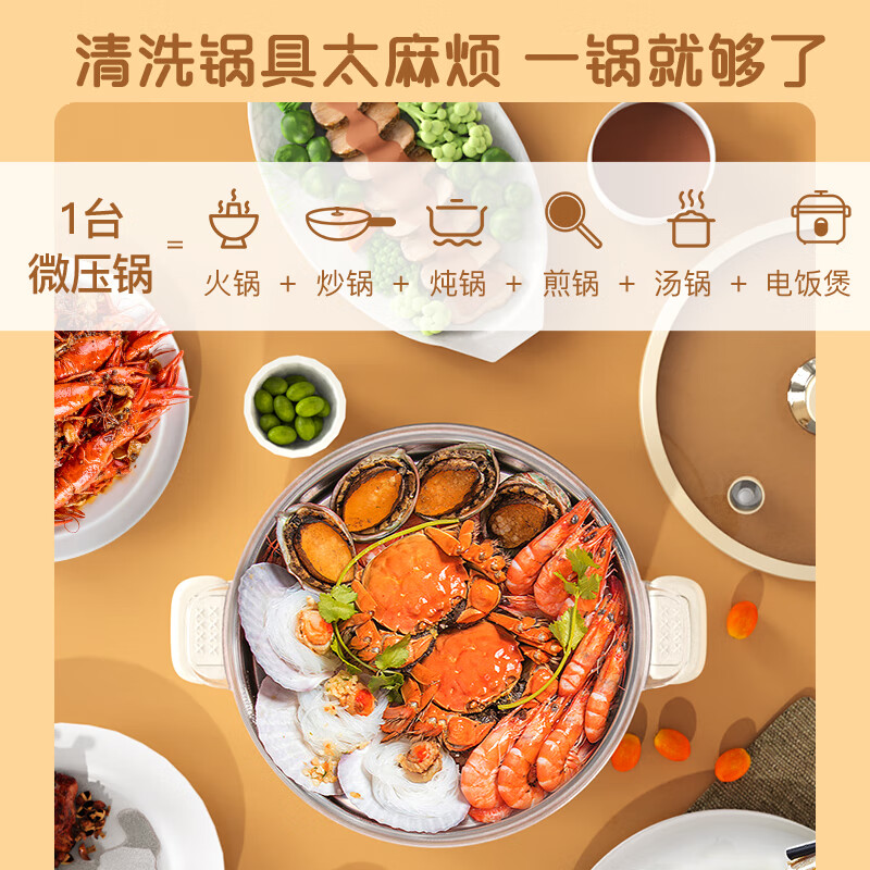 澳柯玛(AUCMA)微压速沸电火锅专用锅具/电锅/电炒锅/家用电热锅/多功能电子微压闷煮锅不粘煲汤锅D2-配蒸笼10L价格:159.00元!