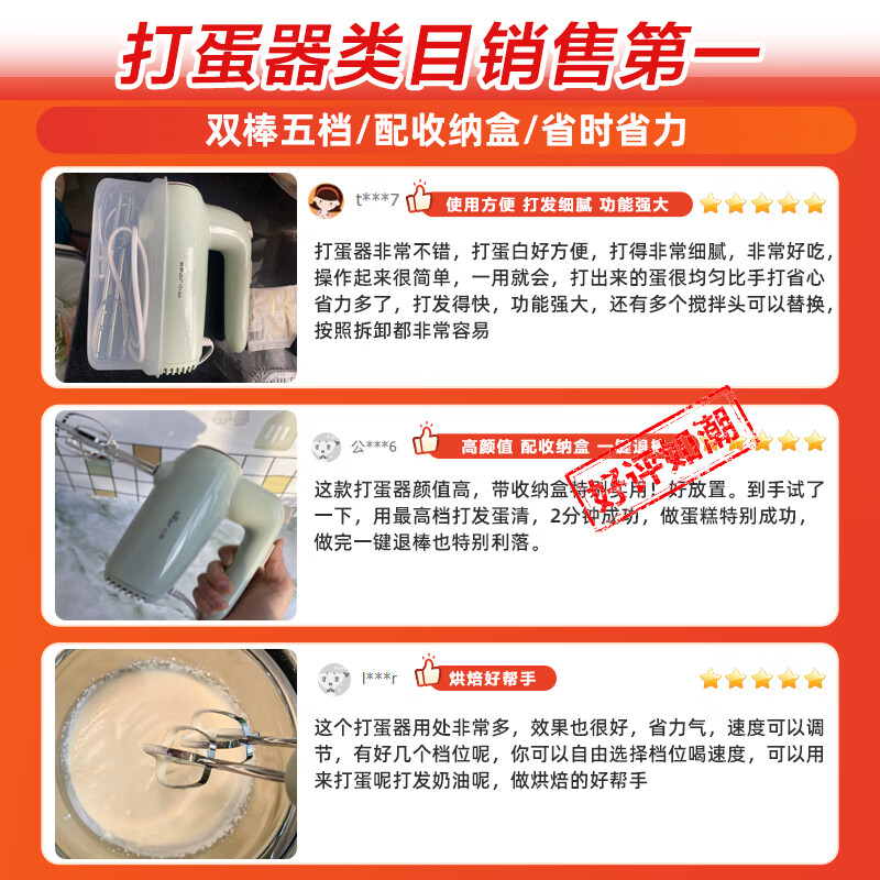 小熊(Bear)打蛋器 家用电动打蛋机 奶油奶盖打发器迷你 烘焙手持式搅蛋搅拌器 带收纳盒 DDQ-B01F7价格:79.90元!