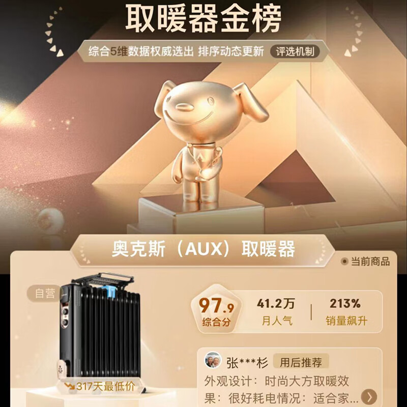 想了解奥克斯NSC-200-13A1外观我比较的喜欢,质量特别的好,西北的的冬天没有电暖器还真不行冷爆了。这个东西比烧煤干净卫生。取暖效果才行,比较安静,比那种风机的安静不少。赶上优惠确实比较划算