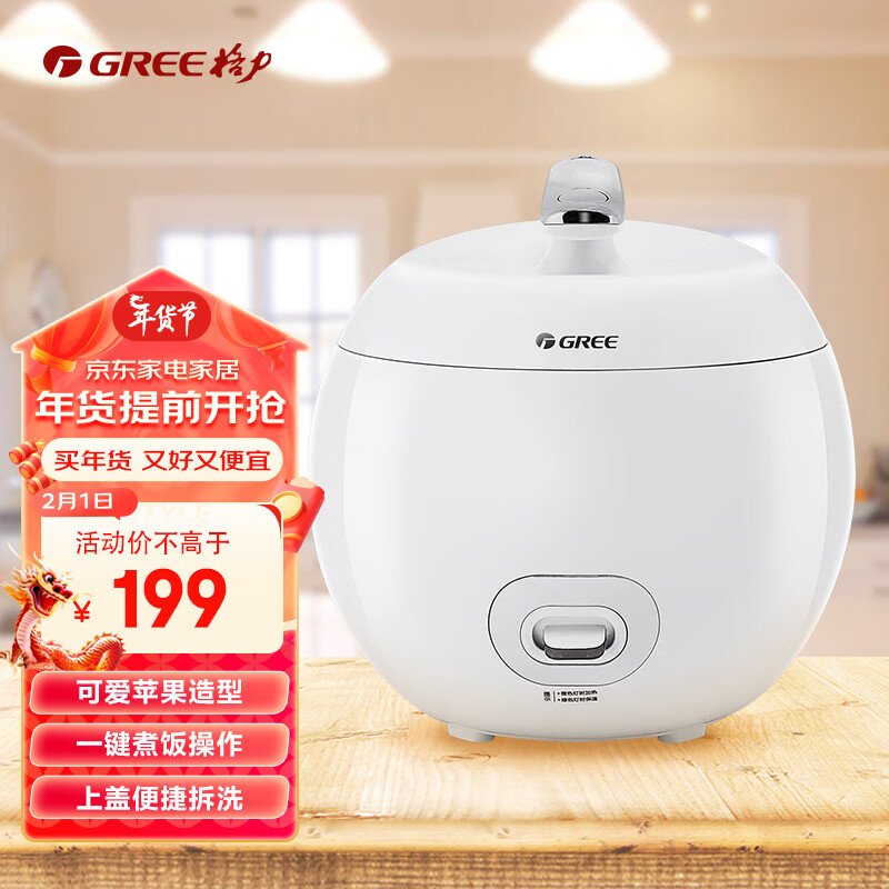 格力(Gree)电饭煲小电饭锅 迷你电饭煲小 1-2人 2L小型不粘内胆 家用送父母 GDF-2003价格:199.00元!