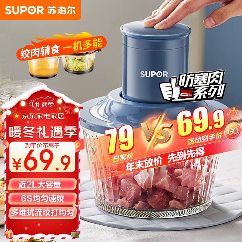苏泊尔(SUPOR)绞肉机家用 电动多功能料理搅拌机绞肉绞馅搅菜婴儿辅食 小型碎肉打饺子肉馅绞肉机 JR35-B175价格:69.90元!