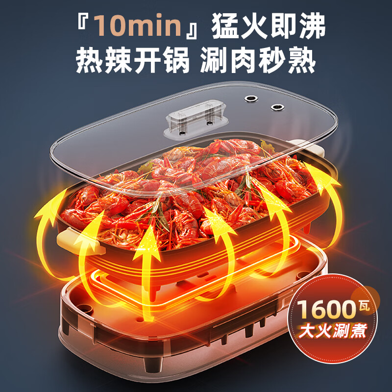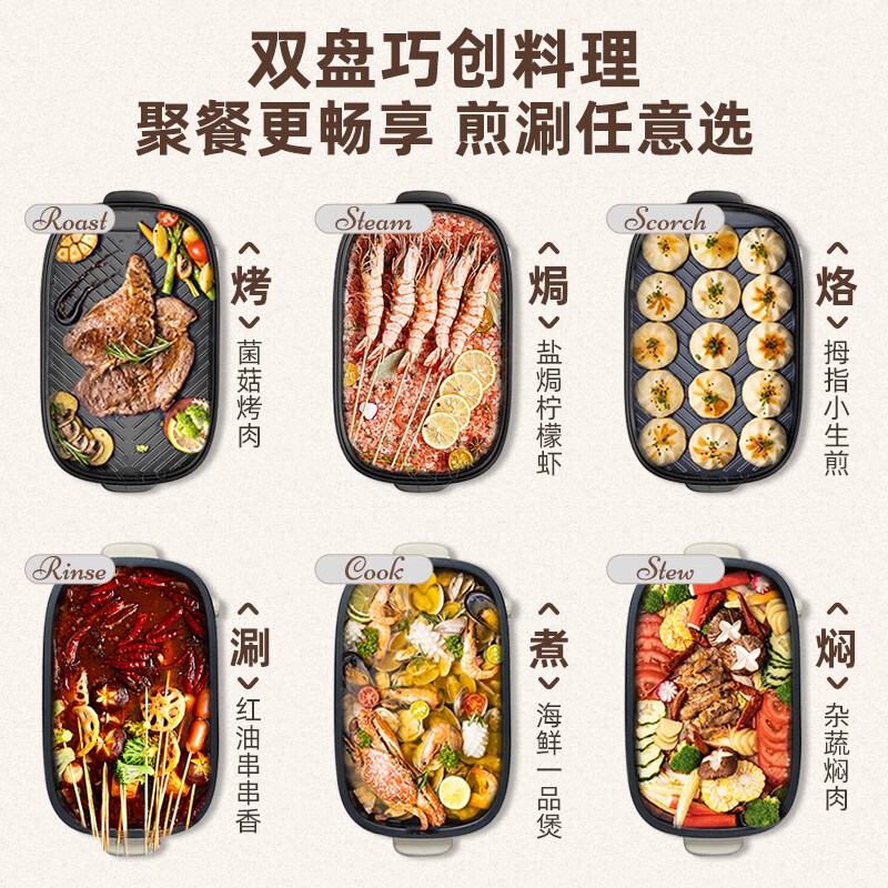 小熊(Bear)多功能料理锅 烤鱼锅 烤涮一体两用锅 火锅专用锅电火锅烤肉锅多用途锅家用火锅锅 DHG-D45G5 4.5L价格:359.00元!