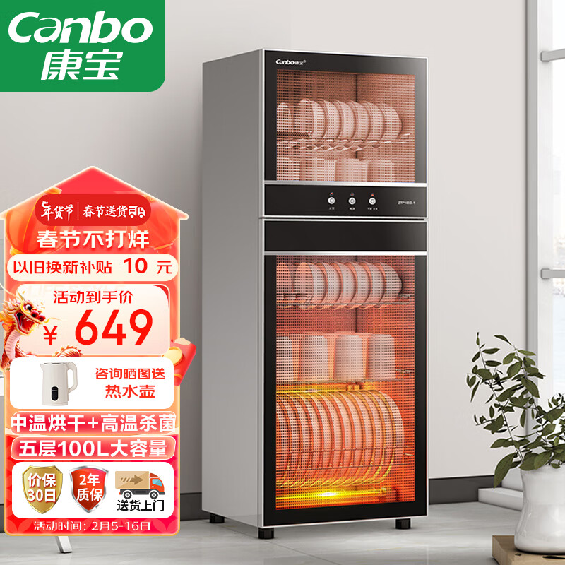 康宝(Canbo)消毒柜家用立式 大容量高温碗筷餐具茶杯小型母婴儿奶瓶消毒碗柜 双门厨房碗碟柜 XDZ100-D1价格:649.00元!