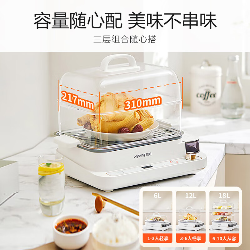 九阳(Joyoung)大容量多功能电蒸箱多层蒸汽锅多用途锅智能蒸锅全透明视窗不锈钢蒸片年货送长辈送老人GZ568价格:219.00元!