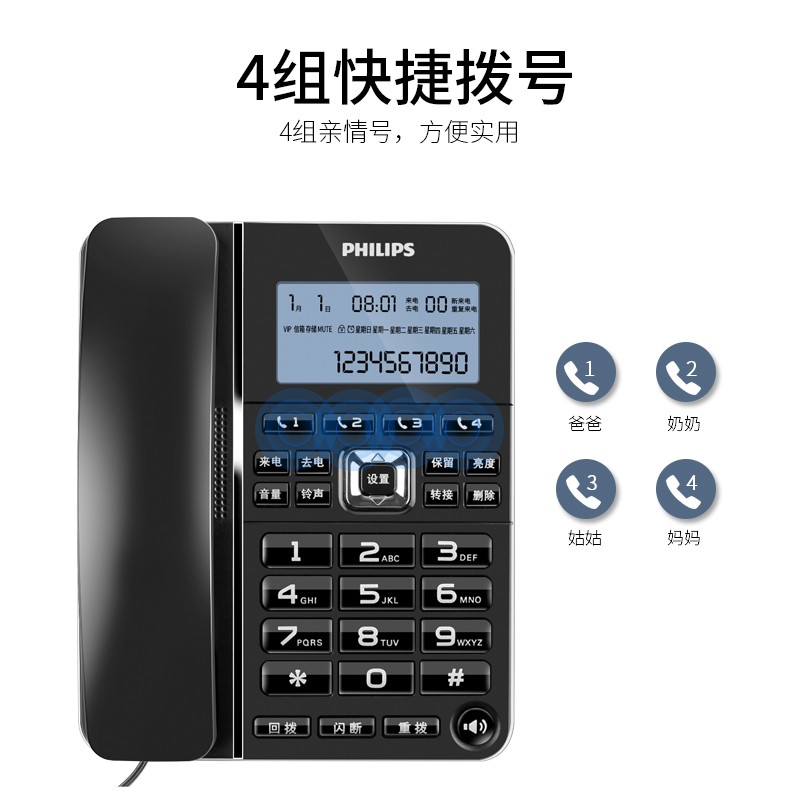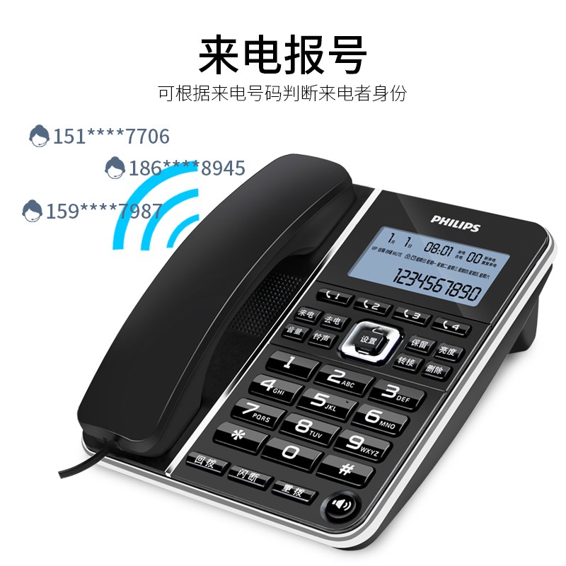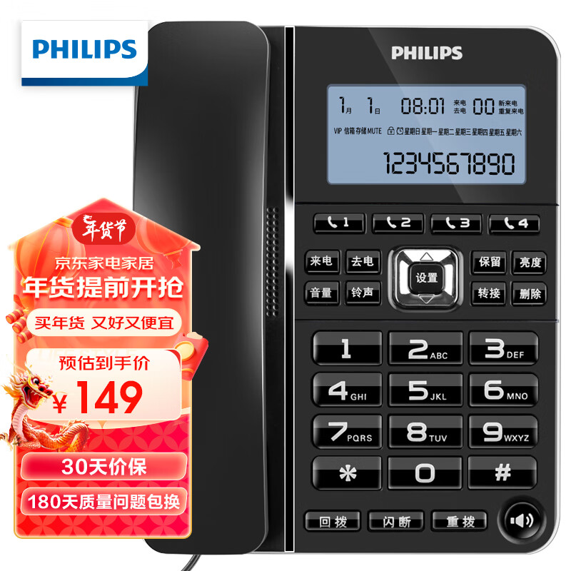 飞利浦(PHILIPS)电话机座机 固定电话 办公家用 一键拨号 转接 来电报号 CORD228黑色价格:149.00元!