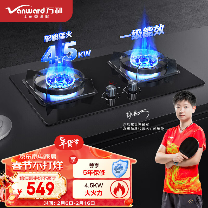 万和(Vanward)燃气灶4.5kW大火力 嵌入式台式两用灶具家用双灶 煤气炉煤气灶钢化玻璃 JZY-C5L96(液化气)价格:549.00元!