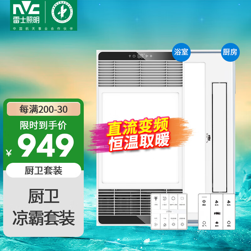 雷士(NVC)八合一智能风暖浴霸排气扇照明一体暖风机浴室取暖器+凉霸套餐B价格:1099.00元!