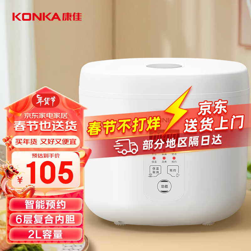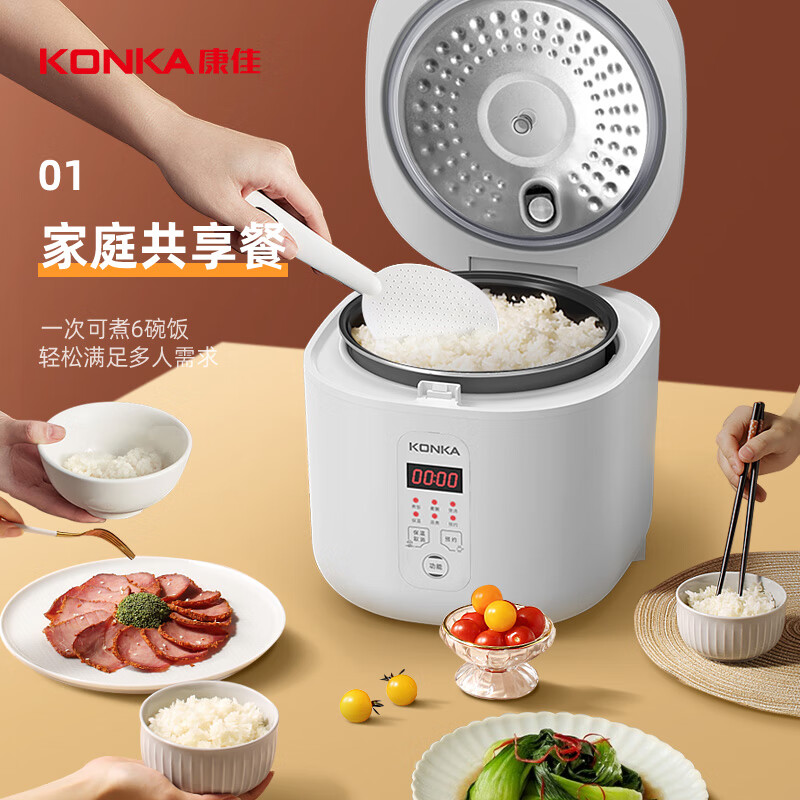 康佳(KONKA)迷你电饭煲小电饭锅 2L容量1-3人智能温控12小时预约煮饭煮粥锅 KRC-W20C401(B)价格:105.00元!