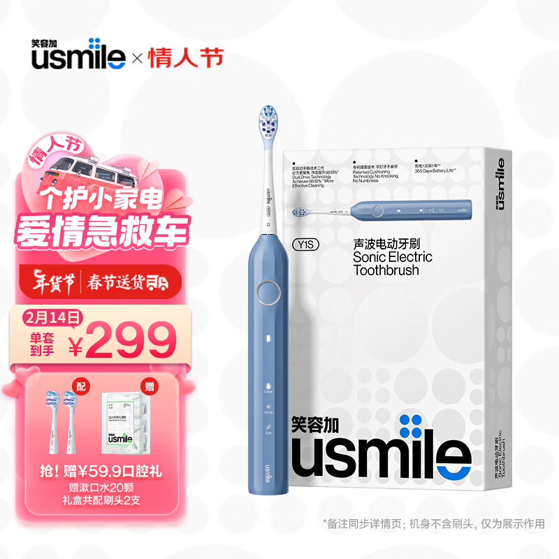 usmile笑容加电动牙刷 成人声波震动电动牙刷送礼优选 Y1s雾蓝价格:329.00元!