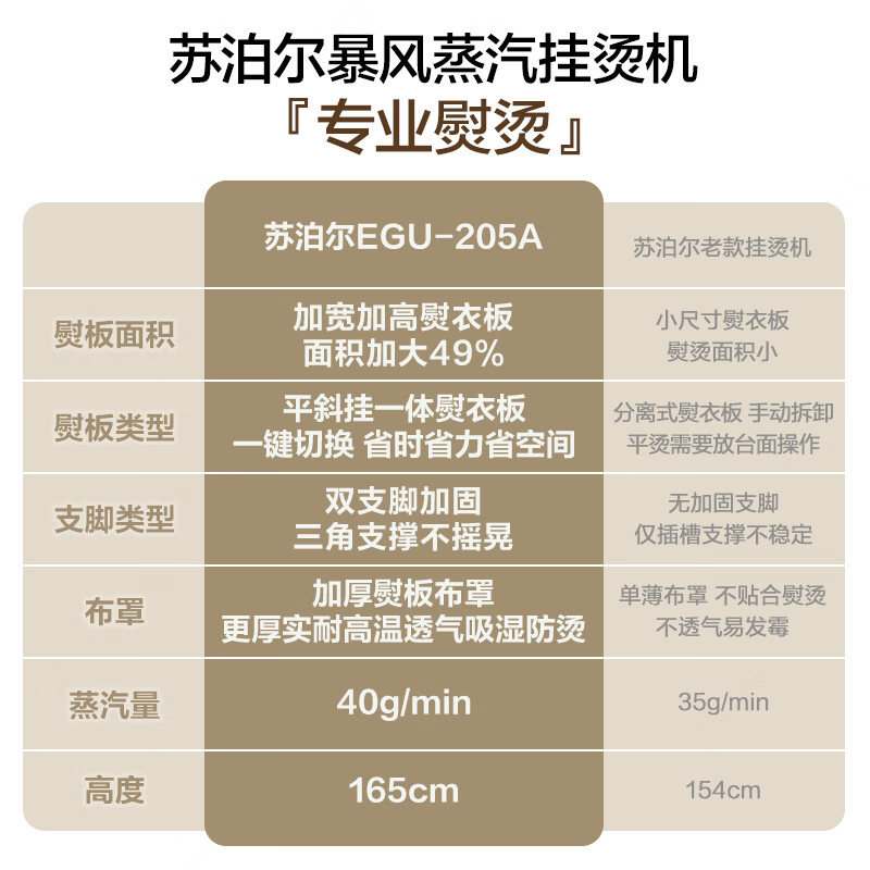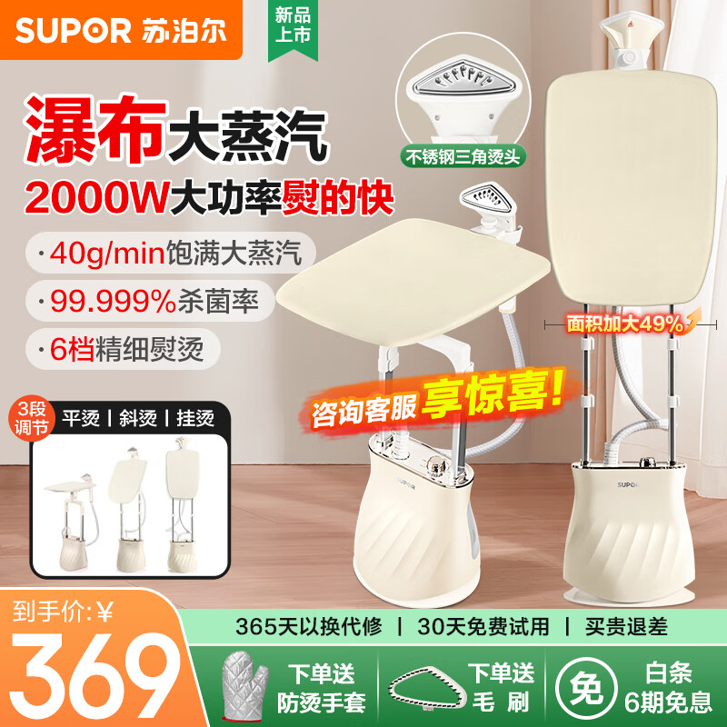 苏泊尔(SUPOR)【一键调节三向】挂烫机家用双杆大功率手持蒸汽熨衣机高效杀菌可分离水箱服装店熨烫机205C价格:410.00元!