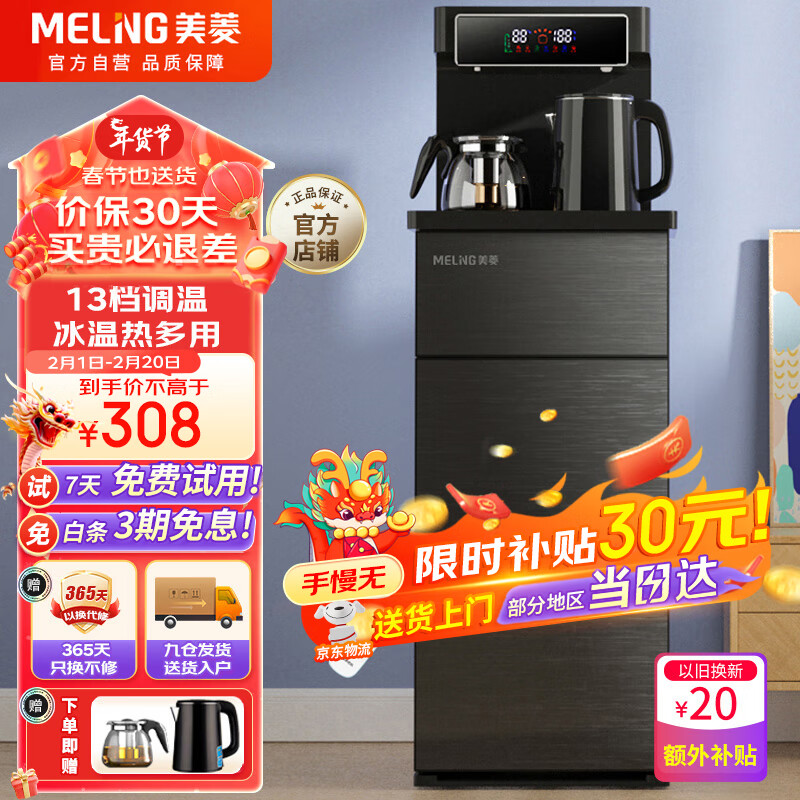 美菱(MeiLing)茶吧机家用饮水机制冷全自动多功能智能遥控冷热型立式下置水桶饮水器MY-C516-B暗夜黑价格:338.00元!