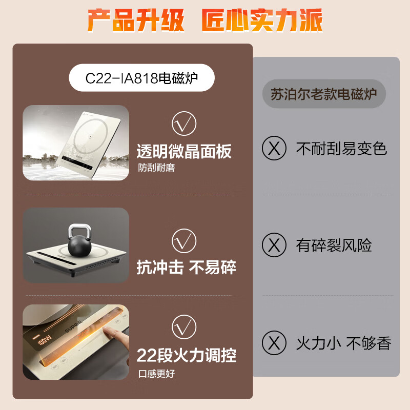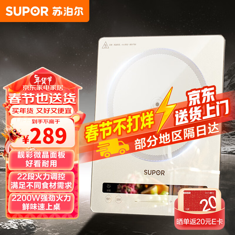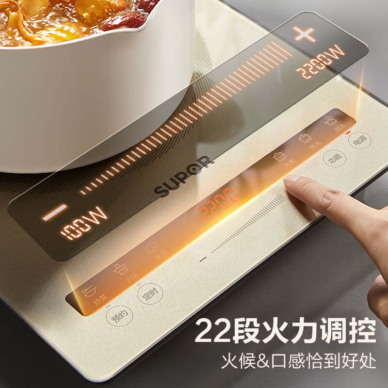苏泊尔(SUPOR)电磁炉 家用 2200W大功率 爆炒大火力 恒匀火加热 透明微晶面板电磁炉电池炉火锅炉C22-IA818 价格:289.00元!