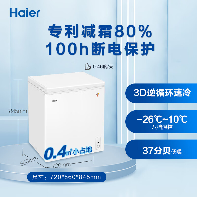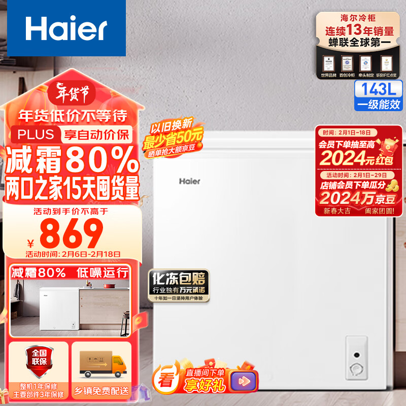 海尔(Haier)143升低霜小冰柜家用商用 冷藏柜冷冻柜两用冰柜小型租房用小冰箱小型冷柜BC/BD-143HTD 以旧换新价格:909.00元!