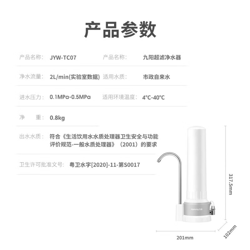 九阳 Joyoung净水器家用直饮厨房自来水过滤器台式超滤净水机水龙头 JYW-TC07价格:179.00元!