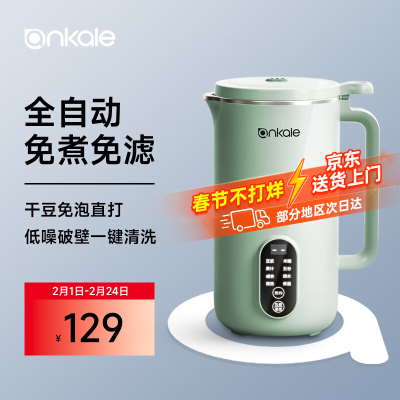 ankale破壁机 豆浆机 迷你小型家用免洗 五谷杂粮全自动免煮 破壁豆浆机 清新绿/450mL价格:129.00元!
